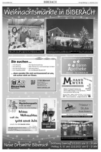 Am Sonntag, 3. Dezember 2023, wird der Reigen der Weihnachtsmärkte eröffnet. An den drei folgenden Freitagen kehrt vorweihnachtliche Atmosphäre in die Ortsmitte ein.
