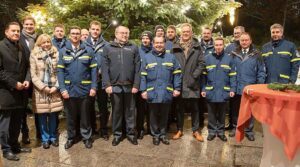 Nach dem Fällen und dem Transport der Bäume am vorvergangenen Wochenende wurde bereits am letzten Montag der Baum für die Berliner Polizei offiziell übergeben. Am vergangenen Mittwoch fand sodann im Beisein zahlreicher Gäste aus Politik und Gesellschaft die offizielle Übergabe und Illumination der 13 Meter hohen und rund dreieinhalb Tonnen schweren Tanne vor der Landesvertretung in Berlin statt. Neben Rudi Hoogvliet (Staatssekretär für Medienpolitik und Bevollmächtigter des Landes Baden-Württemberg), Yannick Bury (Mitglied des Deutschen Bundestages) sowie Martin Aßmuth (Bürgermeister Gemeinde Hofstetten), nahmen auch Dierk Hansen (THW-Vizepräsident) und Sebastian Gold (THW-Landesbeauftragter für Berlin, Brandenburg und Sachsen-Anhalt) an der Veranstaltung teil.