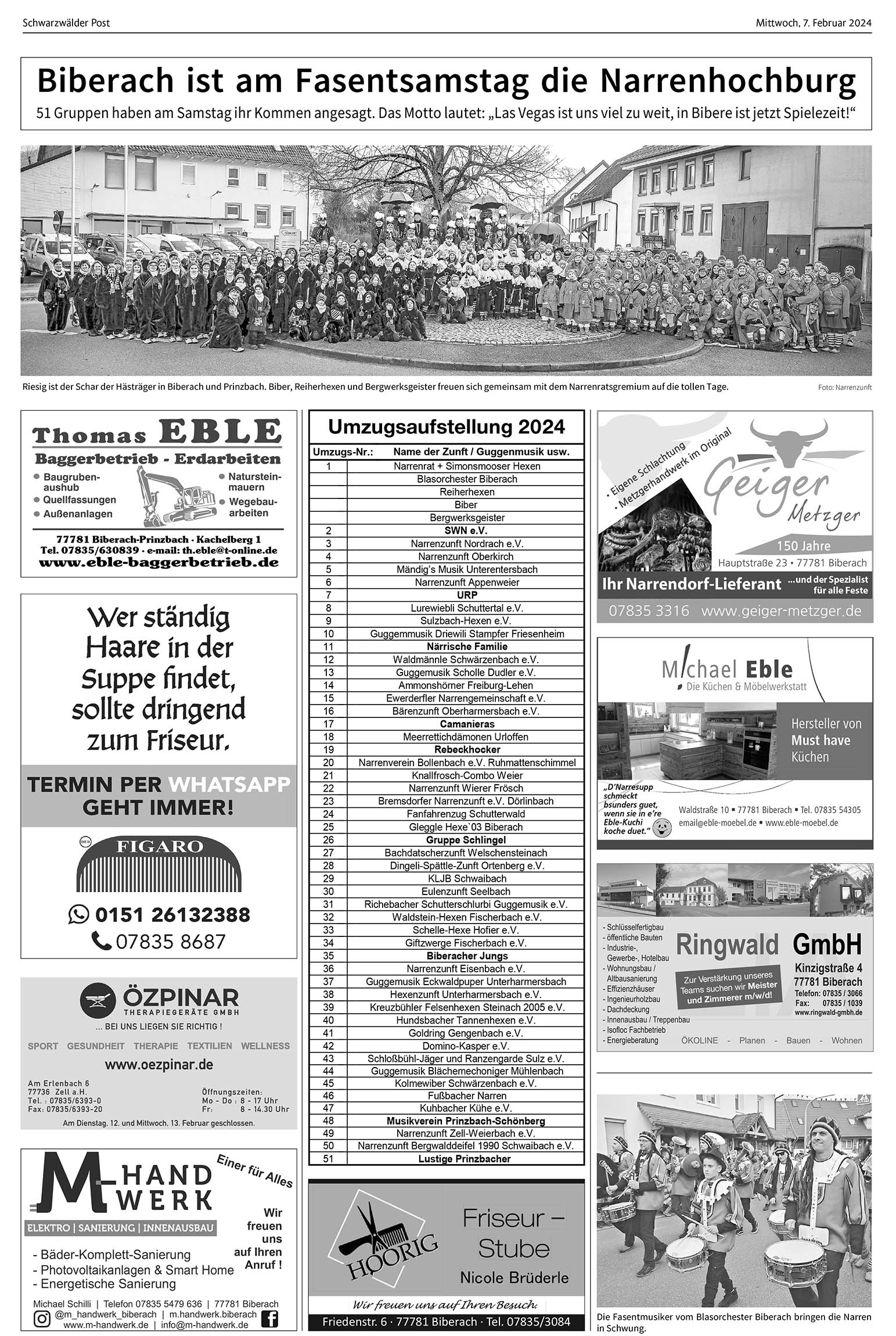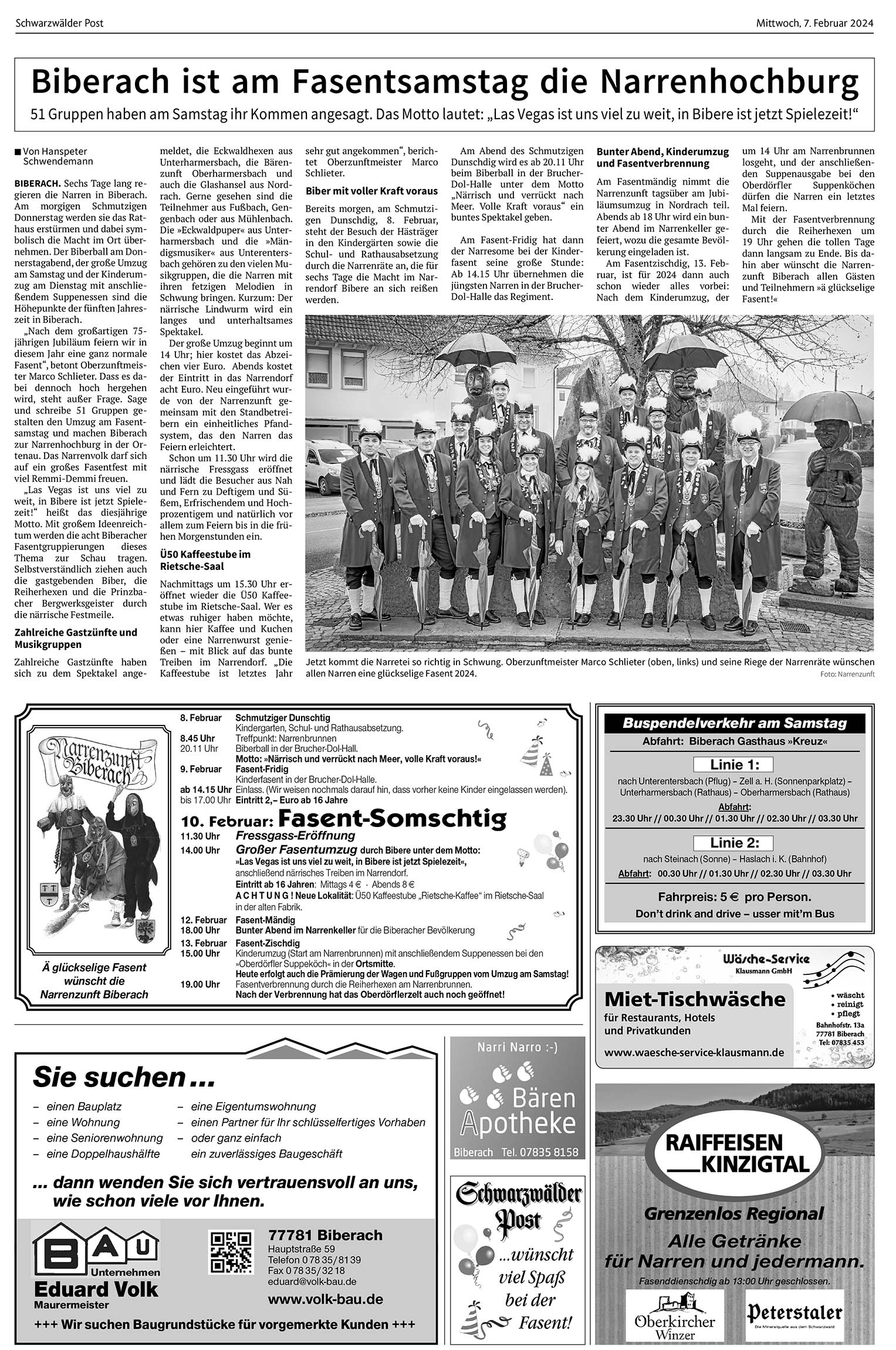 Biberach | 7.02.2024 Biberach ist am Fasentsamstag die Narrenhochburg Foto:Riesig ist der Schar der Hästräger in Biberach und Prinzbach. Biber, Reiherhexen und Bergwerksgeister freuen sich gemeinsam mit dem Narrenratsgremium auf die tollen Tage. Foto: Narrenzunft von Hanspeter Schwendemann51 Gruppen haben am Samstag ihr Kommen angesagt. Das Motto lautet: „Las Vegas ist uns viel zu weit, in Bibere ist jetzt Spielezeit!“ Foto: Narrenzunft Foto: NarrenzunftDas könnte Sie auch interessieren:Foto: roemiliafotografieDie Lucky Kids singen für den Frieden, die…Foto: Reinhold Messner / MundologiaReinhold Messner: „Der Nanga Parbat hat…Foto: Hanspeter Schwendemann„Lasst uns froh und munter sein“ beim…