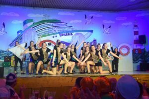 „Volle Kraft voraus!“ hieß es beim Biberball. „Närrisch und verrückt nach Meer“ ließ sich das Narrenvolk im vollbesetzten Dampfer auf eine Reise über die Ozeane entführen. Und wie es sich gehört, begann der Abend mit der Schiffstaufe, welche Jonas Breig mittels einer Mega-Pulle höchstpersönlich und mit viel Schwung vornahm: „Bibera“ sollte von nun an der stolze Ozeanriese heißen, der mit Volldampf die närrische Fahrt aufnahm.