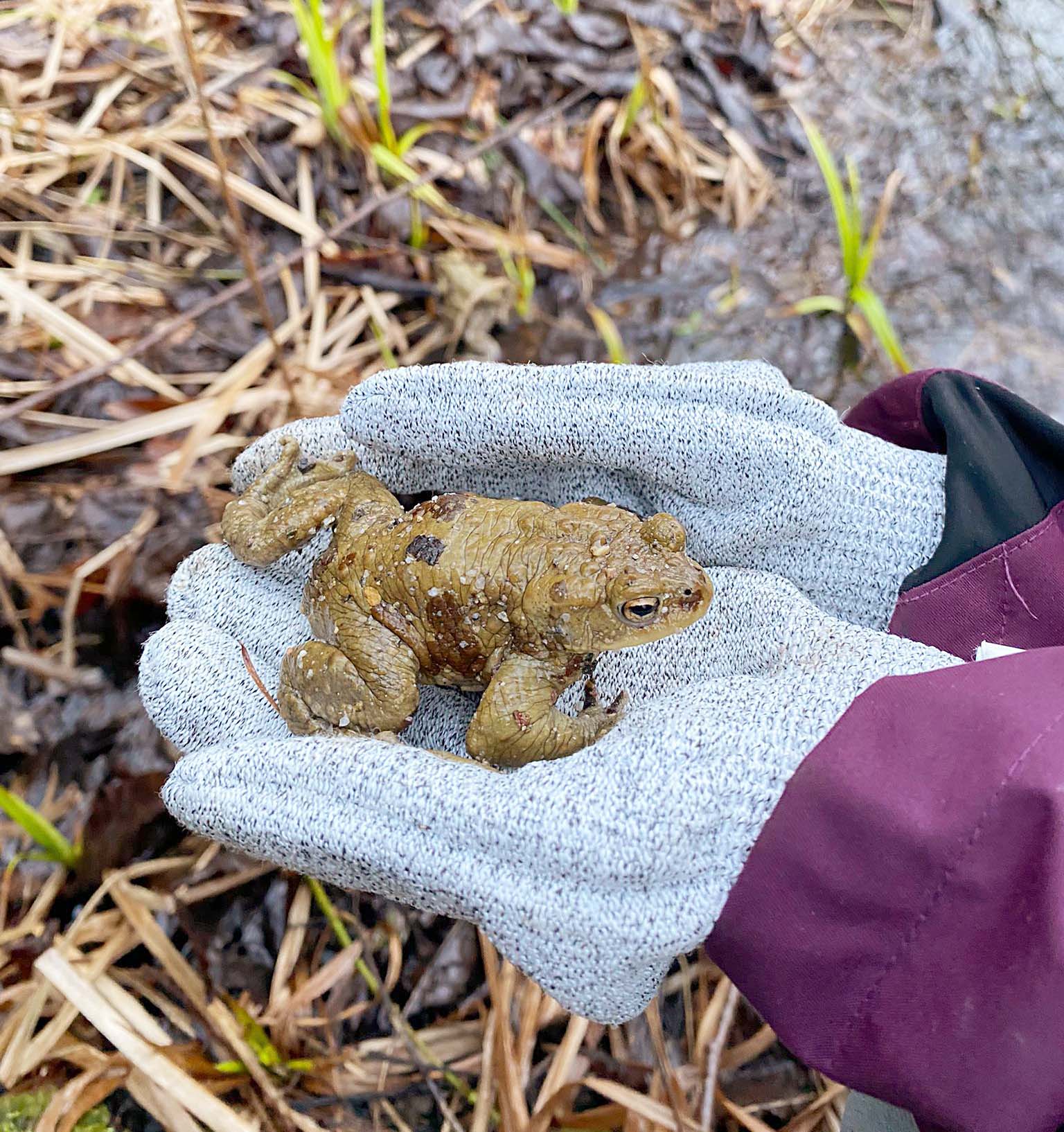 In diesem Jahr waren die Amphibien extrem früh zu ihren Laichgewässern gewandert –genauso schnell musste sich die Gruppe organisieren. Aktuell elf ehrenamtliche Helfer kontrollierten zwei Mal täglich sechs Wochen lang mit insgesamt 76 Arbeitsstunden die Eimer an der Straße und siedelten insgesamt 142 Erdkröten, drei Grasfrösche, 17 Fadenmolche und 17 Bergmolche in ein neues Biotop um, um sie vor den stark befahrenen Straßen zu schützen.