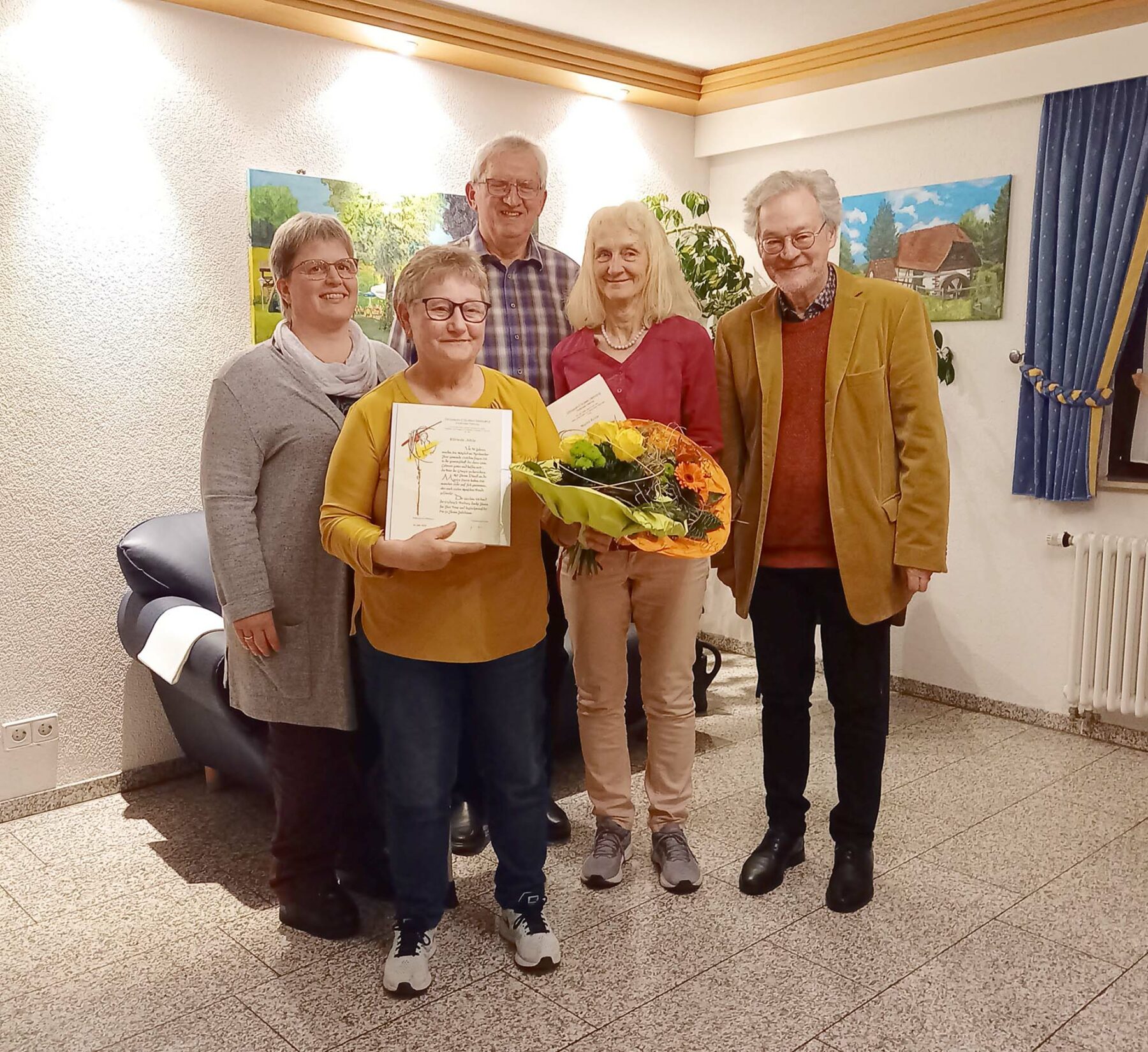 Für langjährige aktive Chorzugehörigkeit konnte Vorstand Bernd Gißler zwei Mitglieder ehren: Marita Echle – „Vor 50 Jahren wurden Sie Mitglied im Kirchenchor Ihrer Gemeinde“, heißt es im Text der Urkunde vom Cäcilienverband. „Seitdem singen Sie in der Gemeinschaft des Chores zum Lobpreis Gottes und helfen mit, die Feier in der Liturgie zu bereichern. Mit Ihrem Dienst an der Musica Sacra haben Sie die Botschaft des Glaubens an den Menschen nahegebracht“. In einem begleitenden Brief des Erzbischofs Stephan Burger ist anlässlich dieses Goldenen Jubiläums zu lesen: „Der Kirchenchor, dem Sie seit fünfzig Jahren dienen, kann auf eine lange und reiche Geschichte zurückblicken. Gott allein weiß, wie viel Freude er schon vermittelt, wie viele Herzen er schon bewegt hat.“