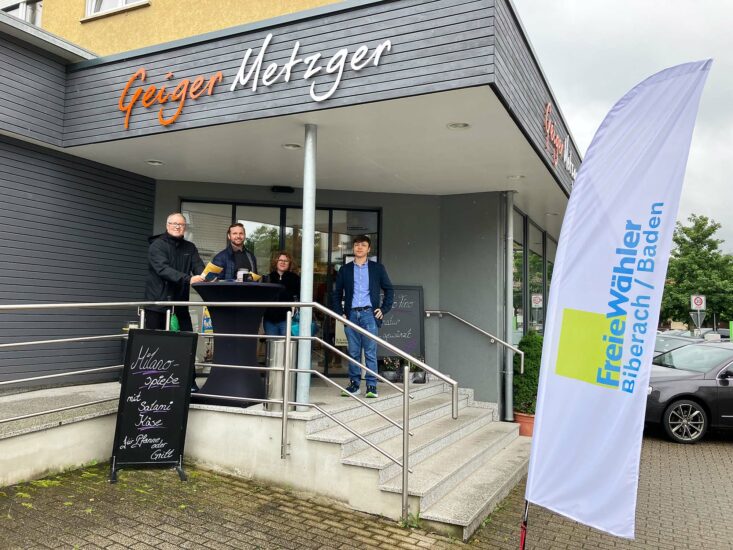 Am vergangenen Freitag stellten sich die Kandidatinnen und Kandidaten für die Gemeinderatswahl den Wählerinnen und Wählern. Am Infostand beim beliebten Biberacher „Kurvenmetzger“ war am Nachmittag reger Betrieb. Es gab interessante Gespräche und auch muntere Diskussionen über die kleine und große Politik.