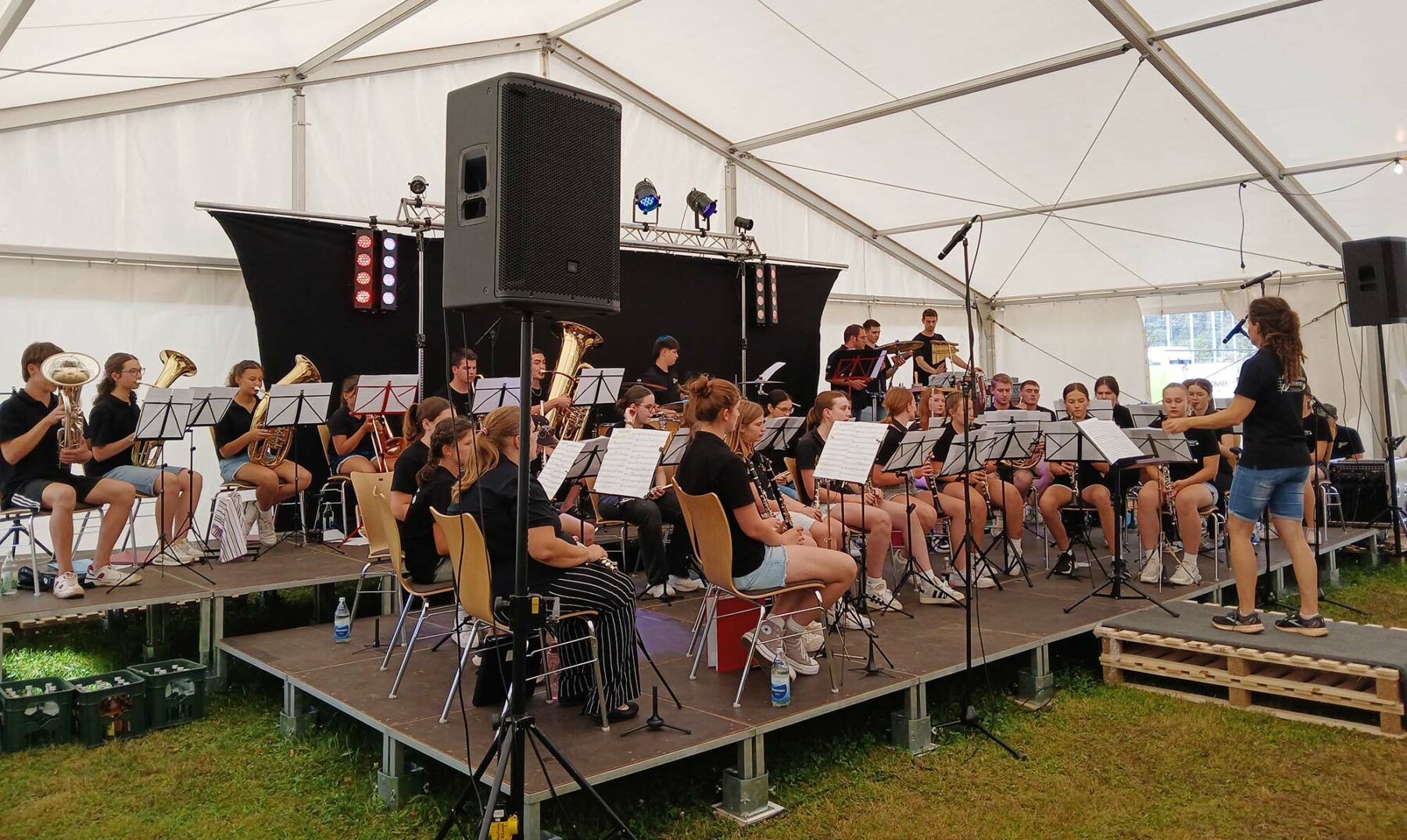Um 17.30 Uhr folgte dann ein weiteres Highlight des Dorffestes. Vier Jugendorchester haben sich zu einem Jugendprojektorchester zusammengeschlossen und ein anspruchsvolles Programm einstudiert. Die Jugendorchester aus Biberach, Prinzbach-Schönberg, Steinach und Welschensteinach präsentierten gemeinsam unter der musikalischen Leitung von ihren Dirigenten Priska Walter und Stefan Griesbaum ein Sommerkonzert im Festzelt.