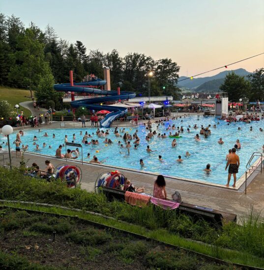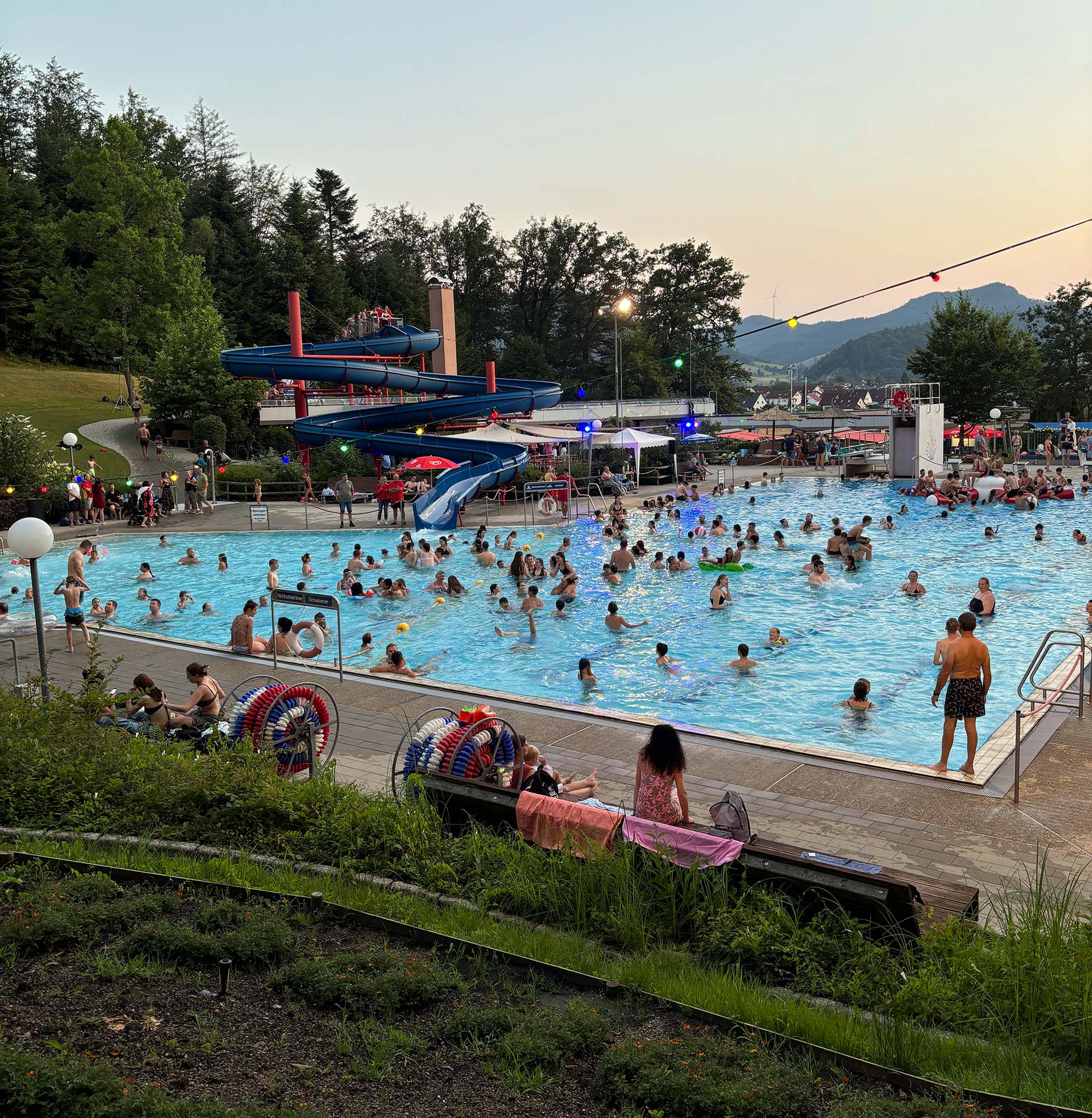 Wie jedes Jahr kam auch das Salat- und Grillbuffet von Schwimmbadgastronomie Cengiz gut bei den Gästen an. Die Musik von DJ Red Baron führte zu einer ausgelassenen Stimmung und die Ausleuchtung der Liegewiese durch das THW Biberach sowie das Team von Held Security sorgten für eine entspannte Atmosphäre.