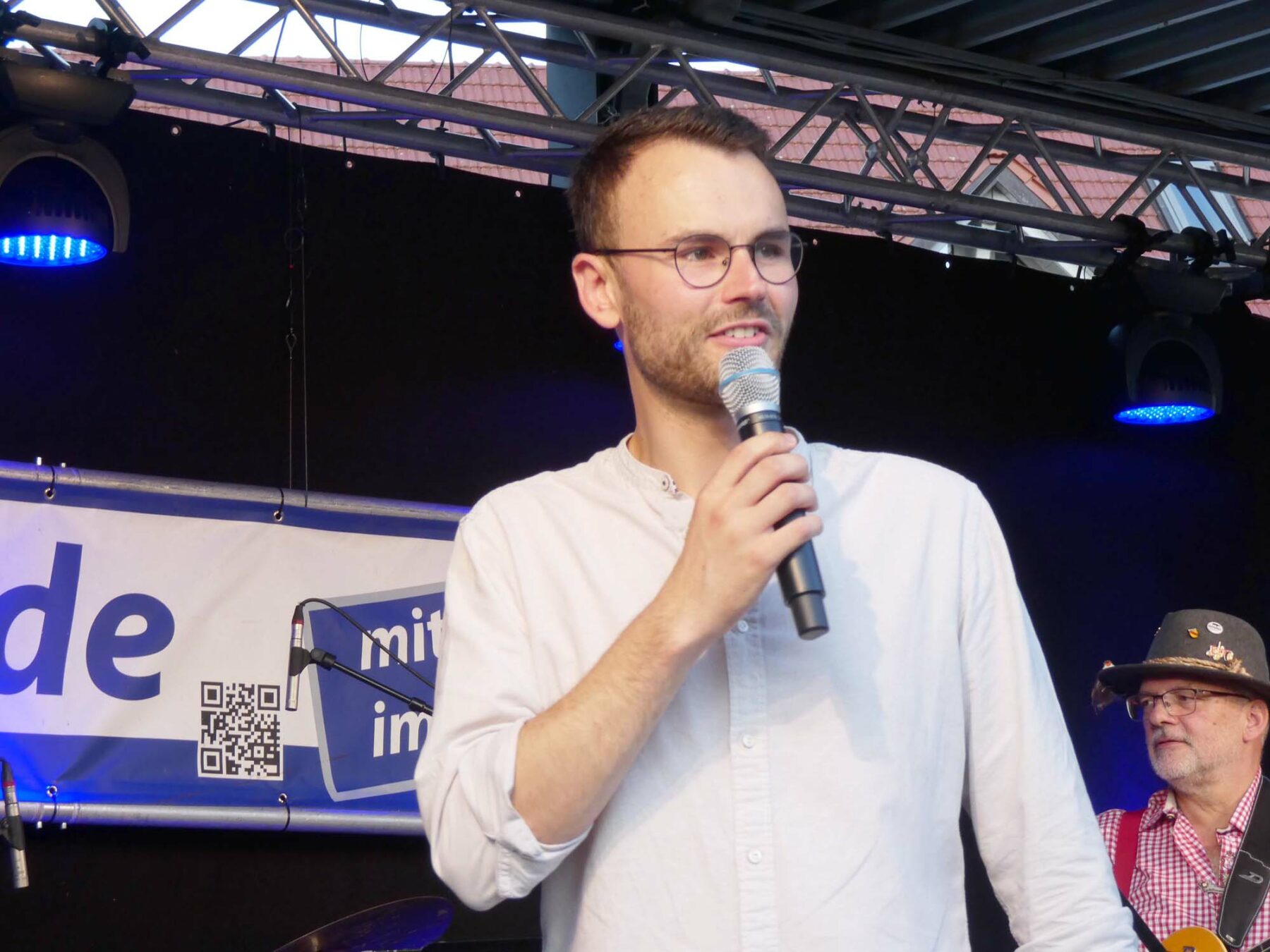 Zuvor schon, als er die Bühne betreten hatte, waren vereinzelte Jubelrufe erklungen. Denn sein Auftritt bedeutete: Nicht mehr lange, dann legt die Band los. Dessen wohl bewusst, hielt Jonas Breig seine Ansprache kurz, ohne dass aber der Dank an jene, denen dieser im Verlauf des diesjährigen „Tavernen-Augusts“ gebührte, zu kurz kam.