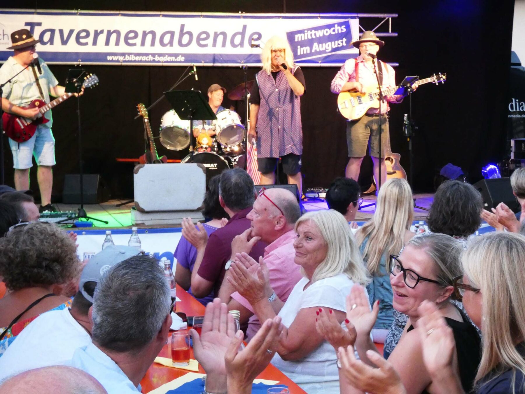 Nicht zu vergessen des Bürgermeisters Dank an die im Hintergrund Wirkenden: Die BadenMedia-Veranstaltungstechnik, „die für einen „klasse Sound“ sorgt.“ Desgleichen an die Helfer des DRK, „bei denen man hofft, dass man sie nicht braucht, aber bei denen man froh ist, dass sie da sind.“ Dank natürlich auch an den Bauhof, „der hier immer mit aufbaut“, unter anderem die Bühne und die Bewirtungsstände betreffend. Überdies ein Dankeschön der Tourist-Info-Mitarbeiterin Sandra Armbruster, „der federführenden Organisatorin bei den Tavernenabenden“, sowie ein Rundum-Dank an alle seitens der Ortsvereine Involvierten samt deren Helfer.