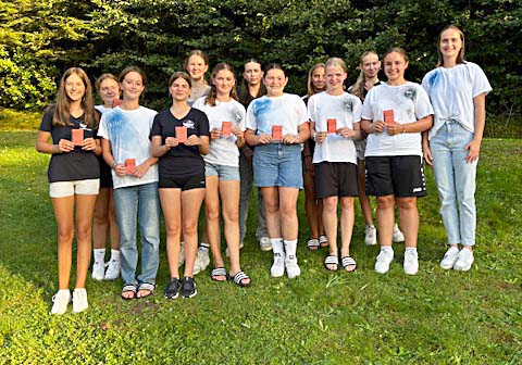 Nicht zu vergessen sind aus seiner Sicht aber vor allem die Trainerinnen und Trainer, die einen großen Beitrag leisten. Sie arbeiten viel im Hintergrund und ermöglichten in diesem Sommer die Abnahme von insgesamt 82 Abzeichen in sechs Schwimmgruppen. 52 dieser Abzeichen sind Rettungsschwimmabzeichen, welche besonders wichtig sind, um den Wachdienst im Sommer zu gewährleisten. Die Trainerinnen und Trainer erhielten für ihre geleisteten Stunden und ihr Engagement ein persönliches Trainergeschenk – in diesem Jahr einen Rucksack.