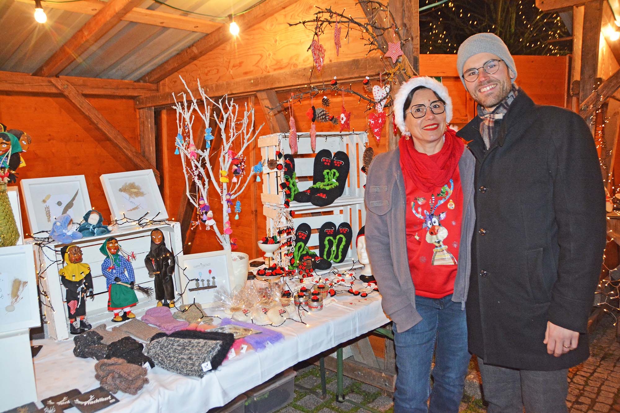 Sehr zufrieden zeigten sich am letzten Abend auch Bürgermeister Jonas Breig und Marktorganisatorin Katja Knäble-Rösch. „Wir hatten in diesem Jahr vier Mal Wetterglück und es ist immer trocken geblieben. Der Besuch war jedes Mal toll“, zeigte sich Katja Knäble-Rösch glücklich. Sie ist bei allen Aktionen mit dabei und bietet am Stand ihre kunstvoll gestalteten Dekoartikel an. Gleichzeitig kümmert sie sich um die Standbetreiber und schaut, dass alles gut abläuft. „Ich bastle sehr gerne und ich liebe Weihnachten“, nennt Katja Knäble-Rösch ihren Antrieb. Und sie freut sich, dass alle Standplätze voll belegt waren und es inzwischen sogar eine lange Warteliste von Bewerbern gibt.