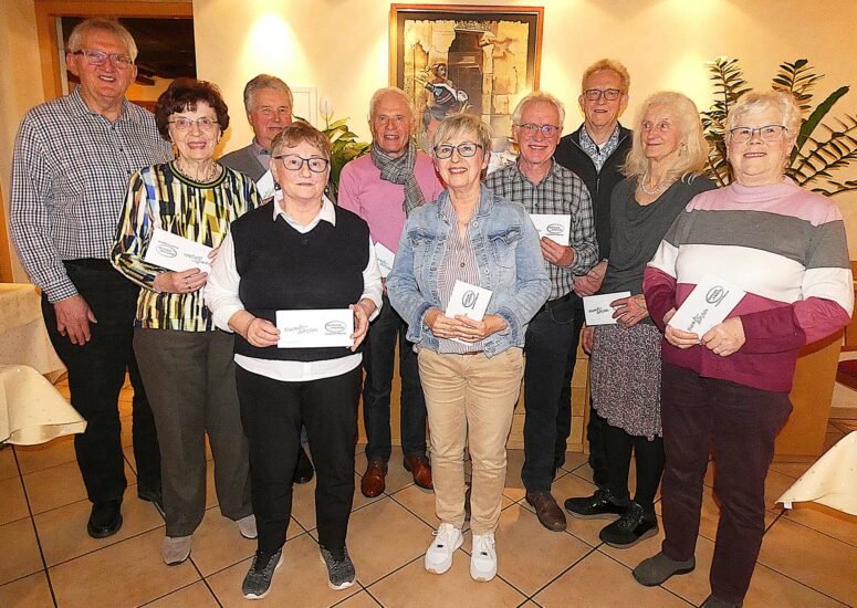 Nicht nur als Sängerin agierte die auf der Mitgliederversammlung Geehrte. Vielmehr übte sie von 1997 an 25 Jahre lang das verantwortungsvolle Amt der Kassiererin aus, seit 2022 ist sie Beisitzerin im Verwaltungsrat. Nicht nur der Verein dankte Angelika Gutmann für ihre Treue (per Blumen und Gutschein), sondern auch der Cäcilienverband der Erzdiözese Freiburg – und zwar mit einer Ehrenurkunde sowie der Ehrennadel mit Goldkranz und der stolzen Zahl „50“.