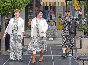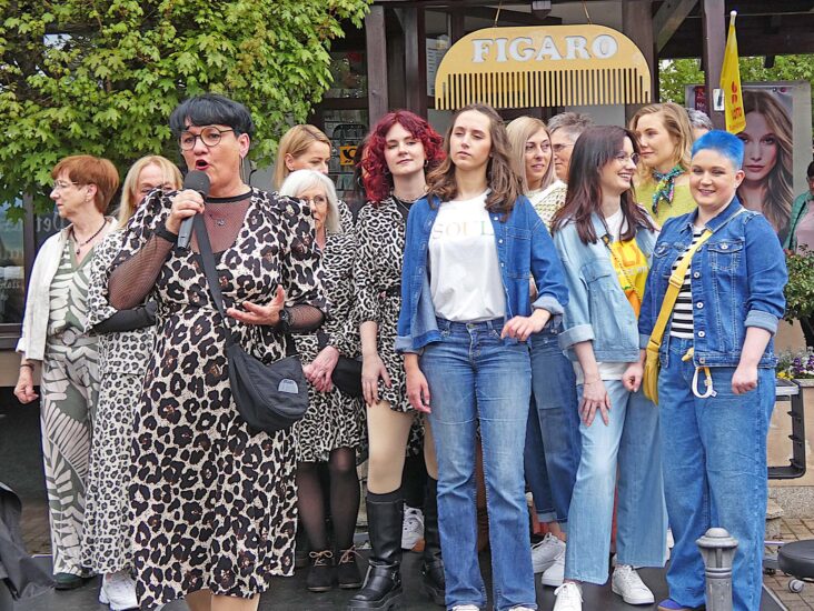 Um 14 Uhr dann drängten sich die Schaulustigen beim Laufsteg, der vor dem Friseursalon „Figaro“ aufgebaut worden war. Mit ihrem erfrischenden Verve moderierte Inhaberin Evi Lehmann eine Frisuren- und Modenschau. Für Schnitt und Haarfarbe sorgte das Figaro-Team direkt auf dem Laufsteg, für die Kleidung das Modehaus Gießler. Wer sich anschließend „live on stage“ die Haare um mindestens 25 Zentimeter kürzen ließ, tat zudem etwas Gutes: Die Haarabschnitte werden von Zweithaar-Spezialisten zu Perücken verarbeitet, der Erlös kommt der Deutschen Krebshilfe zugute.