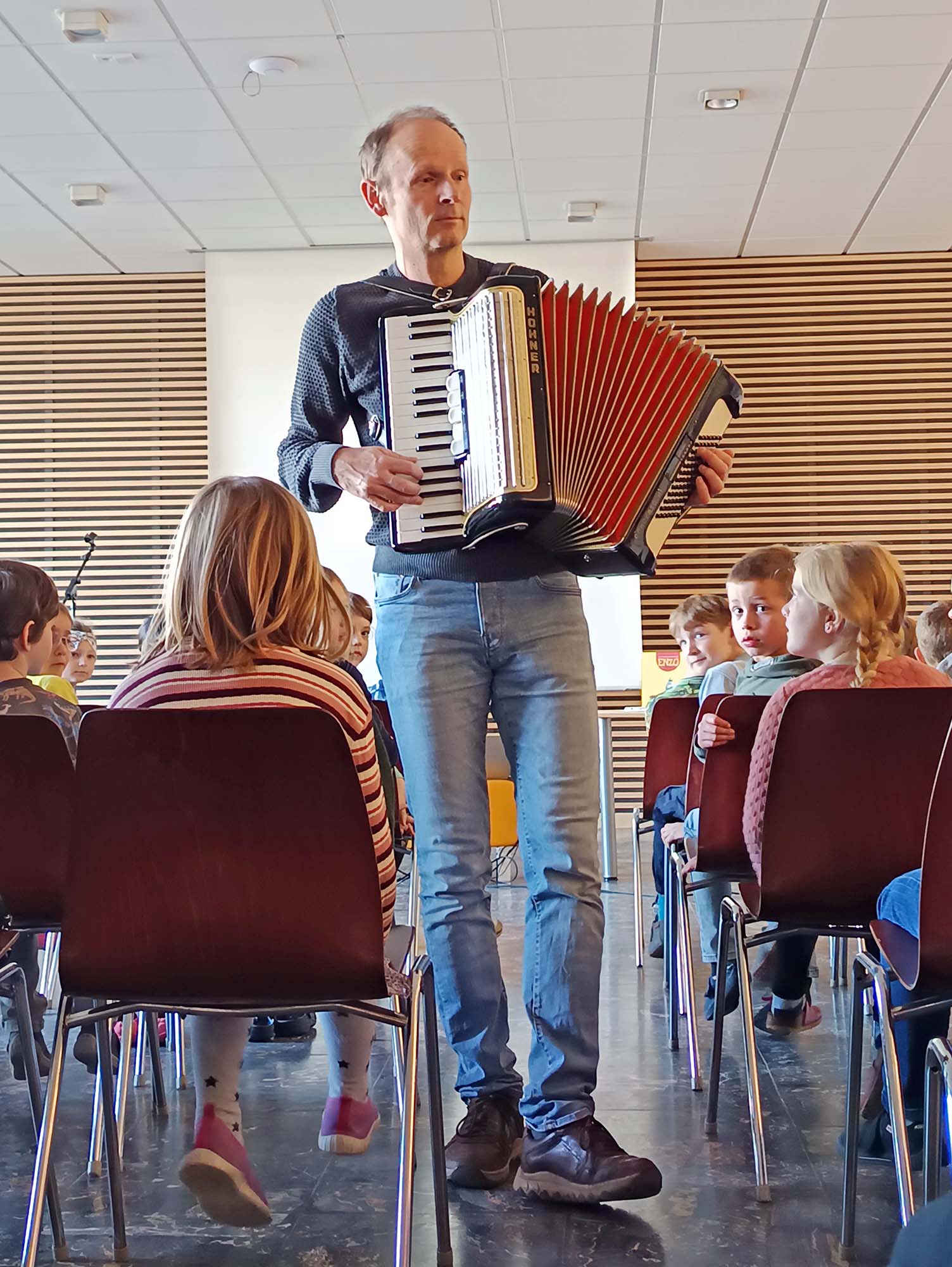 In der Grundschule Biberach fand wieder die jährliche Lesewoche statt. Ein Höhepunkt der diesjährigen Lesewoche war die Autorenlesung. Als Autor zu Gast war Jochen Weeber, der die Kinder mit einer erfrischenden Mischung aus Lesung und Akkordeon-Untermalung begeisterte.