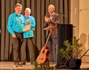 Der acht Mann starke Männerchor (ein Sänger fehlte krankheitsbedingt) begeisterte mit vier a cappella-Stücken: „Singt, singt…“ (Wellerman-Melodie), „Dorfkind“ (Dorfrocker), „Amoi segn ma uns wieder“ (Andreas Gabalier) und „Fürstenfeld“ (STS) als Zugabe.