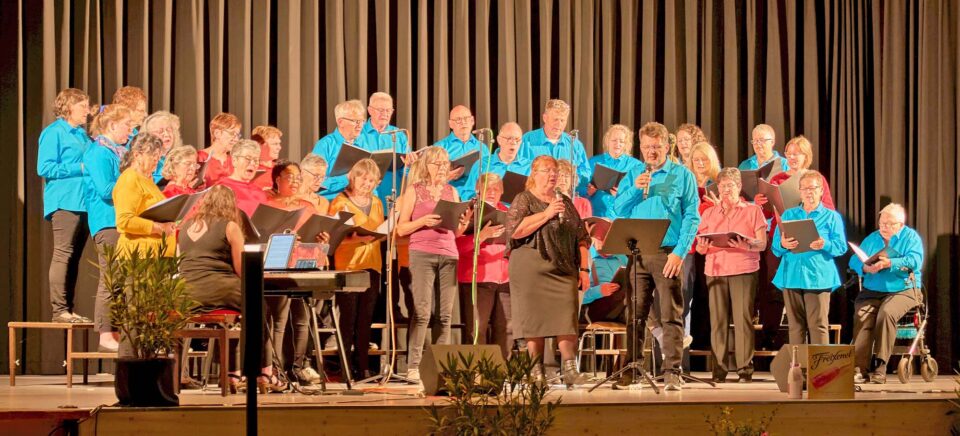 Der gemischte „Chor für Alle“ zeigte Vielseitigkeit: Mit „Ich kann nur den Refrain“ (Wise Guys), „Major Tom“ (Peter Schilling) und „Freiheit“ (Marius Müller-Westernhagen) setzten sie moderne Akzente.