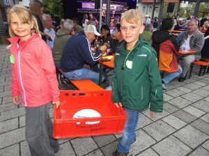 Fleißige Musikvereinsjugend: Pia und Simon räumten emsig das gebrauchte Geschirr von den Tischen.