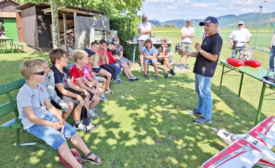 Hoch hinaus ging es für 13 Kinder beim Biberstarken Ferienprogramm. Am 23. August waren sie auf dem Modellflugplatz der Modellfluggruppe „Grashüpfer“ zu Gast und durften erste Flugversuche unternehmen.