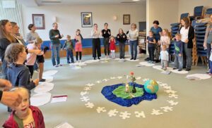 Es versammelten sich rund fünfzwanzig Kinder im Chorsaal, um gemeinsam einen Gottesdienst in der Kinderkirche zu feiern. Thema des Morgens war die Schöpfungsgeschichte.