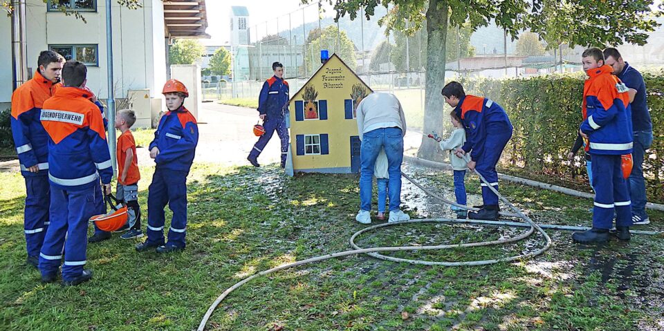 Viel Publikum dann gab es bei den Vorführungen, die von 14 Uhr bis etwa 17 Uhr stattfanden. Entsprechend viele Ohren vernahmen den eingangs erwähnten Alarmruf Florian Möllers. Was also tun angesichts der brennenden Holzscheite? Nun, die Jungen und Mädchen der 15 Köpfe zählenden Kinderfeuerwehr wussten genauestens Bescheid und zeigten den Zuschauern, wie kinderleicht der Umgang mit dem Feuerlöscher ist. Dafür ernteten sie viel Applaus.