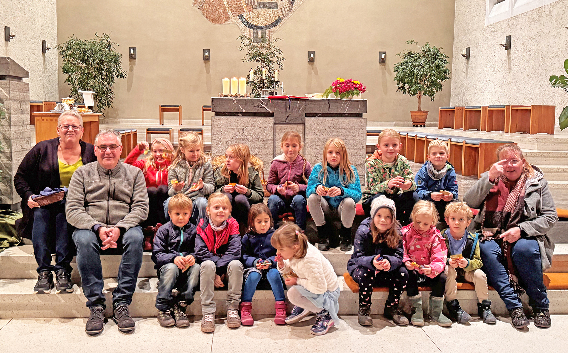 Der Gottesdienst stand im Zeichen des Weltmissionssonntags und damit im Zeichen von Myanmar. Das Land wird seit dem Militärputsch 2021 von einem Bürgerkrieg erschüttert. Besonders die Kinder leiden dort unter den Folgen. In einem eindrucksvollen Moment betrachteten die KiKiBi-Kinder ein Spendenplakat, beschrieben, was sie darauf sahen, und teilten ihre Gedanken mit der Gemeinde.