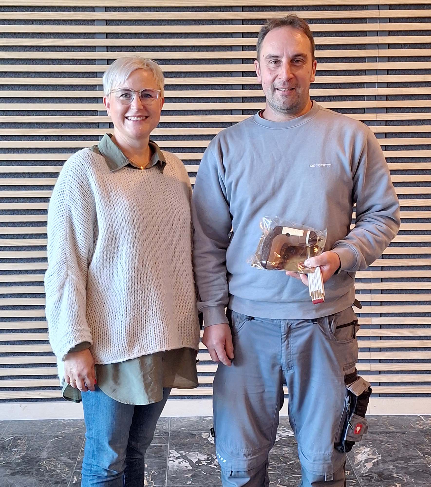 Zum Einstieg in seine Arbeit an der Grundschule Biberach hat er einen neuen personalisierten „Meter“, einen Schlüsselanhänger mit Auszug und einen Akkuschrauber aus Schokolade erhalten! Alles, was ein Hausmeister eben so braucht!