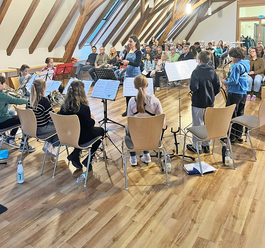 Die Nachwuchsmusikerinnen und -musiker präsentierten ein buntes, vielseitiges Programm. Es reichte von den frischen, lebendigen Beiträgen des Kinderorchesters über die ersten gelungenen Auftritte der Jüngsten bis hin zu souveränen Darbietungen fortgeschrittener Talente. Neben verschiedenen Blasinstrumenten – von Querflöte und Klarinette über Trompete und Horn bis zum tiefen Blech – bereicherten auch ausdrucksstarke Klavierstücke das Programm. Mit einer charmanten Moderation führten die Kinder selbst durch den Nachmittag und erklärten dem Publikum, welche Fertigkeiten und Besonderheiten sie in den Stücken erarbeitet hatten. Jeder Beitrag zeigte, wie viel Begeisterung, Fleiß und Herzblut im Kinderorchester stecken.