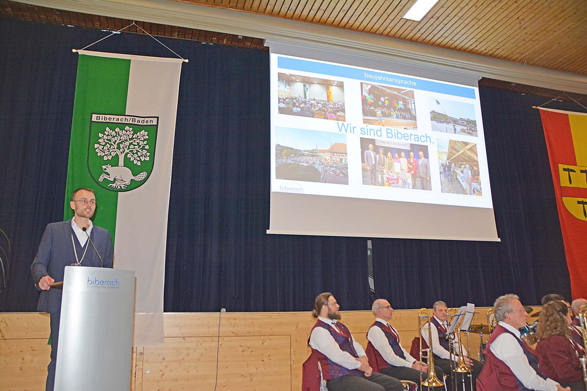 Als Leitgedanken für seine Neujahrsansprache hatte sich Bürgermeister Breig den Grundsatz „Wir sind Biberach“ aus dem Leitbild der Gemeinde ausgewählt, das im Rahmen des Lokale-Agenda-Prozesses entstanden ist. „Gemeinde, das sind nicht die da oben. Gemeinde, das sind wir“, betonte Breig. Die Gemeinde lebe davon, dass sich Menschen einbringen, mitgestalten und Verantwortung übernehmen.