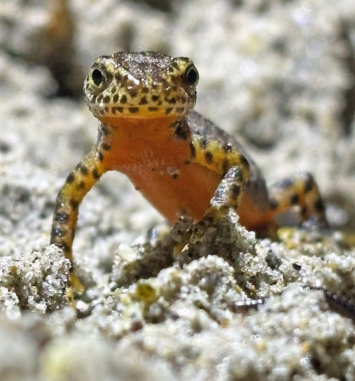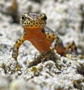 Am Abend des Zaunbaus begann prompt die Amphibienwanderung. Als magische Grenze gelten hier etwa 5 Grad Celsius. Ist es kälter, unterbrechen die Tiere ihre Wanderung und warten auf wärmere Temperaturen. Ergebnis der ersten Kontrollgänge: einige Erdkröten und Dutzende kleiner, zarter Bergmolche.