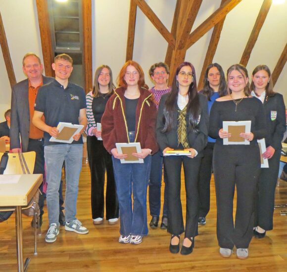 Neun Musiker und Musikerinnen haben das Jungmusikerleistungsabzeichen in Gold in Staufen bei der BDB Musikakademie abgelegt. „Das JMLA in Gold ist eine große Herausforderung und verlangt den Absolventen viel Wissen und Können ab“, betonte Präsident Polap. Exemplarisch trug er den Text einer Urkunde vor. Geehrt wurden: Larissa Baumann und Marie-Luise Bruder (MV Unterentersbach), Ilayda Gökay und Fiona Schmidt (MV Zunsweier), Julia Kurun (StaKa Gengenbach), Hannah Rauch (TK Fischerbach), Johanna Weißer (MV Schenkenzell), Mike Schultis (MV Steinach) und Andrea Wernet (StaKa Zell).
