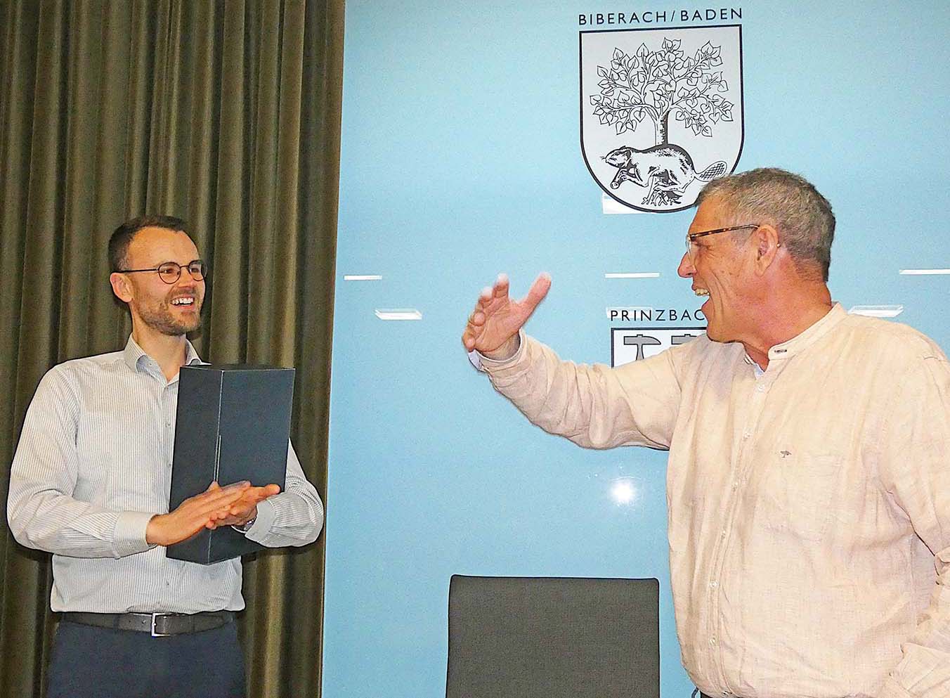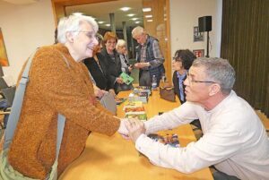 Am Ende des dritten Abends der derzeitigen Buchvorstellungs-Tour dankte Bürgermeister Jonas Breig mit einem Präsent im Namen der Gemeinde, de Hämme schwang – fleißig Bücher signierend – den Kugelschreiber, und im Foyer sorgten „drei wundervolle Damen“ für Speis´ und Trank.