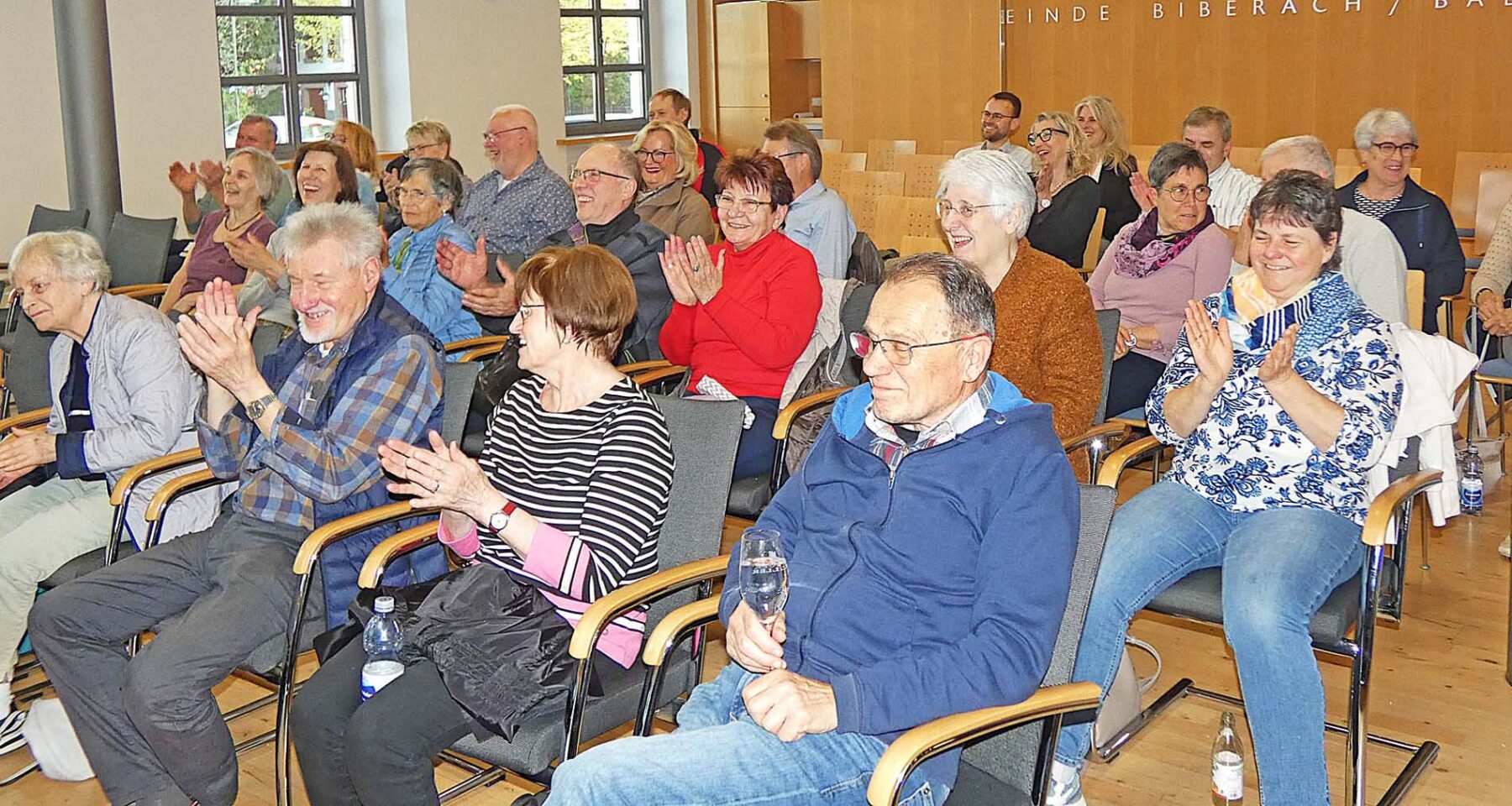 Die unterschiedlichsten Themen behandelten die zum Besten gegebenen Texte. Da ging es beispielsweise um eine Ode ans Grüßen, um Post von Karl Lauterbach mit der Bitte sich impfen zu lassen, um menschliche Double, um Ziegel und des Hämmes grinsende Schwiegermutter und deren handwerklich völlig unbegabtes Schwiegersöhnchen, um Oma Erni, um die Herren von der Deponie, um ein Lob auf orangene Straßenmänner, um eine „Sustainabilitiy-Managerin“, aber auch um Muggedatscher und weitere Lieblingswörtle in der „Muaddersproch“ („unser Dialekt ist doch einfach super)“, sowie um südbadische Schimpfworte und deren Übersetzung ins Hochdeutsche. Aus dem überaus harmlos klingenden „Chrischdkindle“ beispielsweise würde dann ein „XXL-Soft-Weichei“ werden.