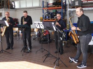 Nach dem offiziellen Veranstaltungsteil lockte ein reichhaltiges Buffet, für musikalische Unterhaltung sorgte das Saxophon-Ensemble des Musikvereins Biberach.
