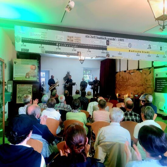 Das Storchenturm-Museumsfoyer war sehr gut besucht, und von Beginn an sprang die besondere Atmosphäre auf die Zuhörer über. Mit ihrer großen stilistischen Bandbreite, von Klassik über Pop und Filmmusik bis hin zu gefühlvollen Balladen und mitreißendem Jazz, boten die vier Musiker ein abwechslungsreiches Programm mit vielen bekannten Melodien. Stücke wie „Bohemian Rhapsody“, der unverkennbare „Pink Panther“, das schwungvolle „In the Mood“ oder die gefühlvolle Ballade „Hallelujah“ sorgten für große Wiedererkennung und begeisterte Zuhörer.