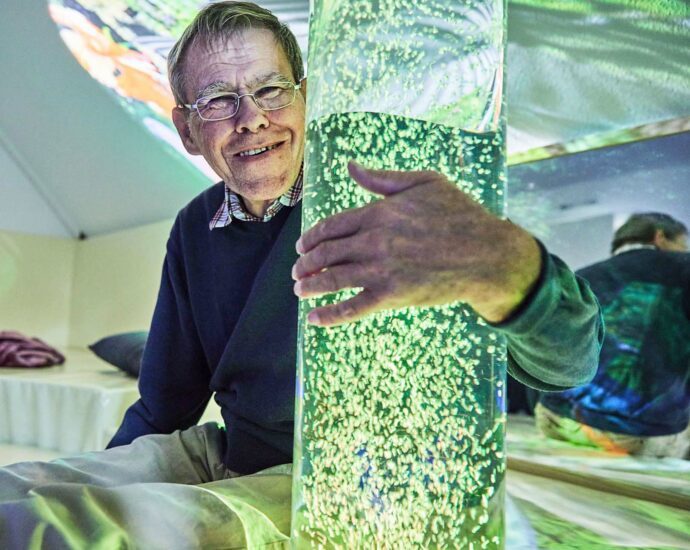Snoezelen ist eine aus Holland stammende Therapie. Durch eine Kombination von Licht- und Farbeffekten, Musik, Bewegung und Gerüchen werden beim Snoezelen einzelne Sinnesorgane angeregt. Dies kann aktivierend, aber auch beruhigend und entspannend wirken.