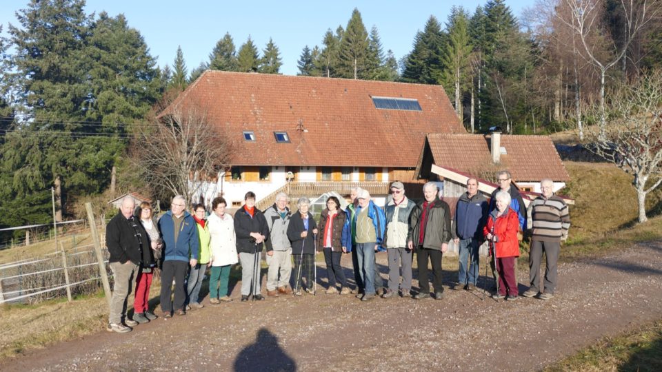 Vom Gasthaus »Mühlstein« führte Tourenleiter Konrad Schwab die Teilnehmer bei schönstem Wetter zunächst in Richtung »Mostbänkle«.  Kurz davor ging es dann hinunter in die Gemarkung Hutmacherdobel. Auf einem breiten Weg wanderte die Gruppe am Schanzbächle vorbei zu den Flackenhöfen. Vorbei an den schönen Bauernhöfen in den »oberen Flacken« führte die Tour durch den Flackenwald zum Haldeneck.