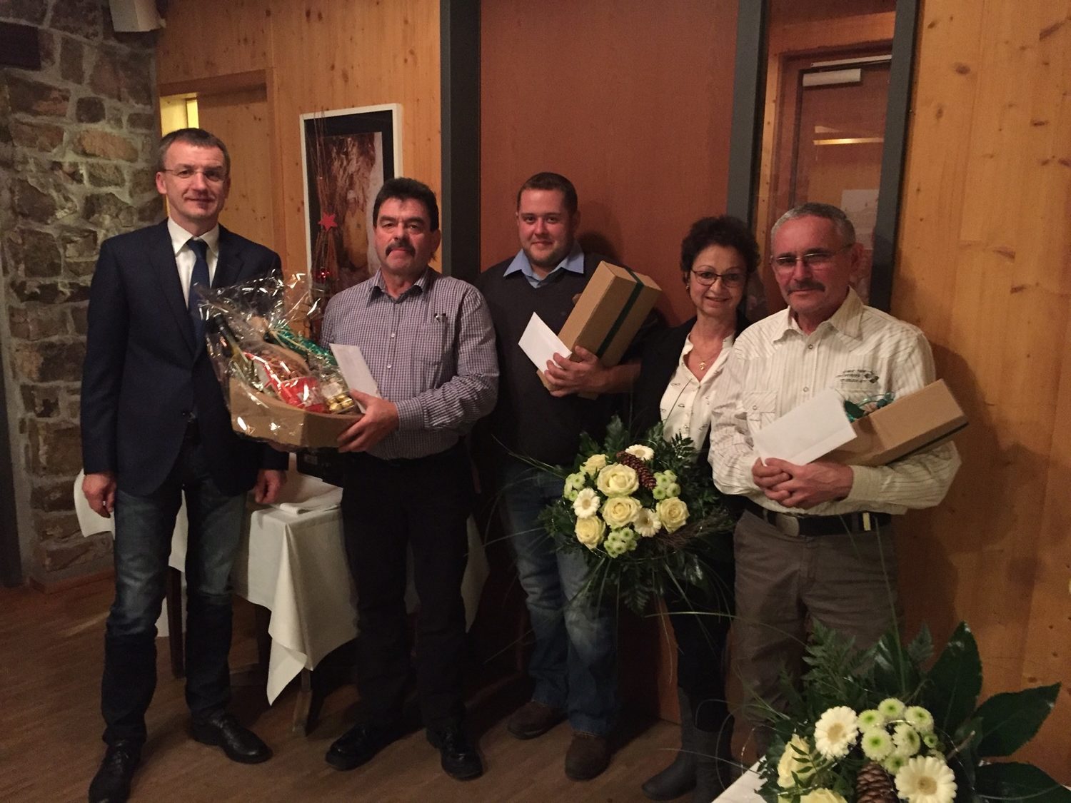 Im Anschluss fanden die Ehrungen statt. Leo Käshammer nahm für 25 Jahre den Dank von Geschäftsführer Manuel Echtle entgegen. Ebenso dankte er Thomas Zoch und Christian Stöhr für jeweils 10 Jahre Mitarbeit. Für die Landschaftspflege auf dem und um das Sägewerk galt besonderer Dank Josef Laifer, der seit 10 Jahren als Rentner das Gelände pflegt.