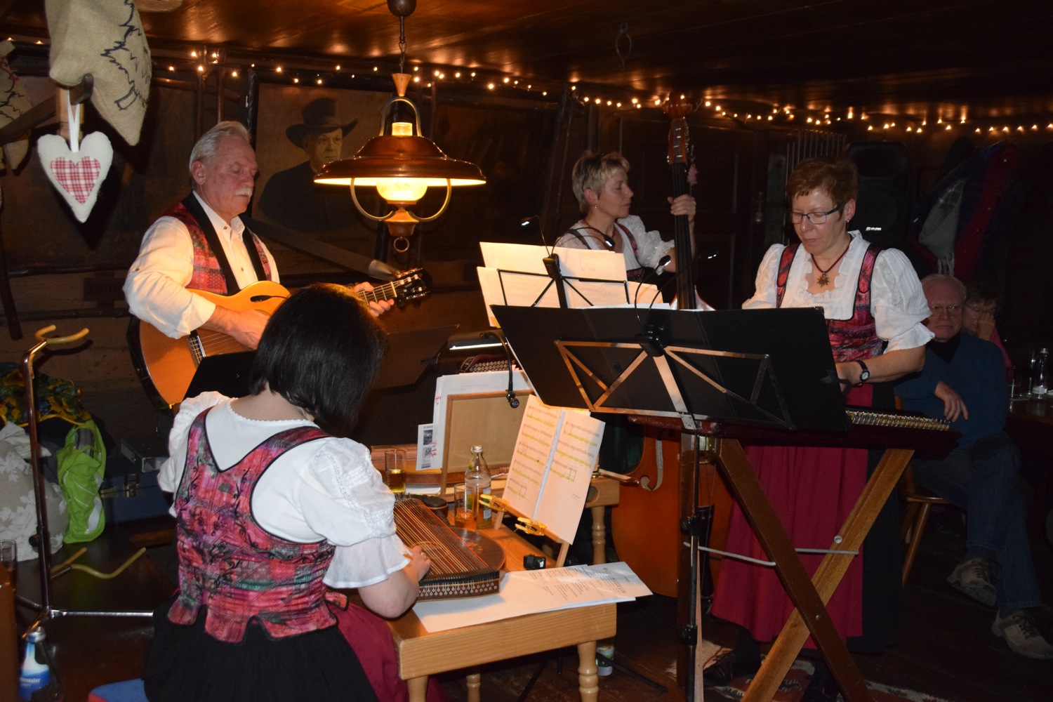Im vergangenen Jahr waren zum traditionellen »Z’Licht geh’n« auf dem Mühlstein weit mehr Besucher gekommen, als in der Gaststätte mit Nebenzimmer Platz finden konnten. Deshalb hat das Bildungswerkteam in diesem Jahr zwei Veranstaltungen organisiert, mit zwei verschiedenen Autorenpaaren, jeweils von der Nordracher Stubenmusik begleitet. Beide Veranstaltungen waren sehr schnell ausverkauft und die Besucher konnten die Veranstaltungen ohne die frühere Enge genießen.
