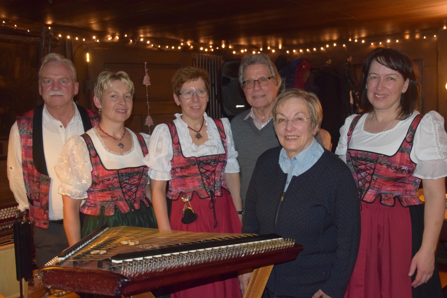 Die Nordracher Stubenmusik mit ihren Akteuren – Luitgard Bieser (Hackbrett), Antonia Haas (Zither, Akkordeon und Kontrabass), Susanne Hansmann (Zither und Akkordeon) und Georg Wimmer (Gitarre und Trompete) – spielte und sang im Wechsel mit den Autoren weihnachtliche und alpenländische Musikstücke und Lieder und sorgte mit den leisen, wohlklingenden Tönen für eine adventliche Stimmung, die es nur auf dem Mühlstein gibt.
