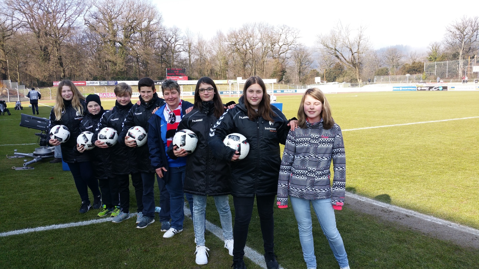In warmen SC-Stadionjacken brachten die Mädchen als Ballservice die ins Aus geschossenen Bälle wieder zurück ins Spiel. Am Ende entschied der FC Bayern München das Spiel mit 2:3 für sich und nahm drei Punkte aus dem »Mösle« mit.