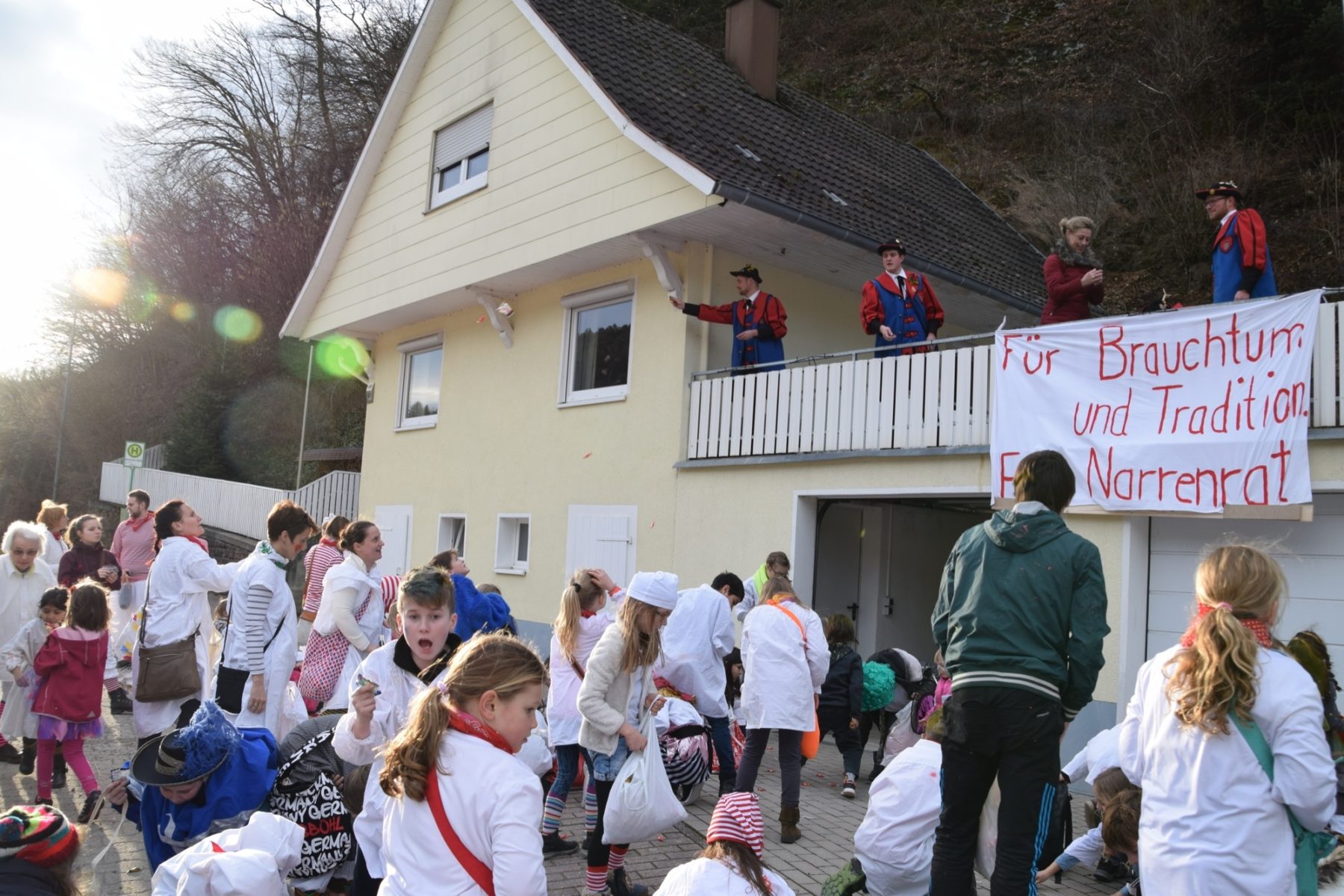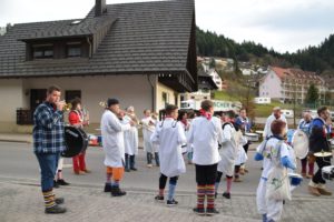 Der Freitag ist der Tag der Kinder und Jugend. An diesem Tag fand am Nachmittag der alljährliche Kinderball statt. Dem Publikum in der bis auf den letzten Platz gefüllten Halle wurde wieder ein kurzweiliges, abwechslungsreiches und buntes Programm geboten. Durch das Programm führte die als Biene verkleidete Moderatorin Verena Vollmer. Die Kindergruppe der Glashansele eröffnete mit ihrem Hästanz das weitere Programm. Danach folgte der Kindergarten Nordrah mit einem einstudierten Tanz. Zwei Kinder der Narrenzunft Nordrach führten als nächstes den Sketch »Hellseher« auf. Die Kinder der Volkstanzgruppe aus Oberhamersbach bereicherten das Programm auch in diesem Jahr wieder mit einem sehr schönen Tanz. Anschließend führten alle Kinder der Nordracher Narrenzunft gemeinsam den Sketch »Schlangenbeschwörer« auf, welcher für Lacher sorgte. In diesem Jahr zum ersten Mal dabei waren die Kinder der Tanzschule Susi Dangl aus Zell, die mit insgesamt drei Tänzen das Programm bereicherten und das Publikum begeisterten. Um Abwechslung zu garantieren führten einige der Kinder der Narrenzunft zwischen den Tänzen zwei weitere Sketche, nämlich »Hundebiss« und »Im Restaurant« auf. Nach dem dritten und letzten Tanz der Tanzschule spielten die Jungmusiker einige Stücke und sorgten damit für eine großartige Stimmung. Der ASV schloss das Programm mit einer Zirkusnummer, bei der die Kinder in Tierkostümen auf der Bühne turnten, auf einem Trampolin hüpften und sichtlich viel Spaß hatten, was auch das Publikum ansteckte. Beim Finale kamen noch einmal alle Mitwirkenden auf die Bühne und holten sich den verdienten Applaus des Publikums ab. Mit der traditionellen und beliebten Pommes-Polonaise, angeführt von Moderatorin Verena, zogen alle Kinder gemeinsam durch die Halle und feierten, begleitet von DJ Jan und seiner musikalischen Unterhaltung, einen bunten Ball.