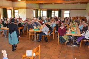 Die Frauengemeinschaft kümmerte sich wie immer um das leibliche Wohl der Gäste und tischte zunächst Kaffee und feinen selbst gebackenen Kuchen auf. Dann trat Michaela Neuberger vor die Senioren und wie! Mit rollenden Augen, lebhafter Gestik und kräftiger Stimme erzählte sie als »Zetzel«, dass sich die Leute früher viele Begebenheiten nicht erklären konnten. Deshalb hätten sie eigene Erklärungen und Lösungen gesucht. Viele der Geschichten würden auch dazu ermahnen, ein rechtschaffenes Leben zu führen.