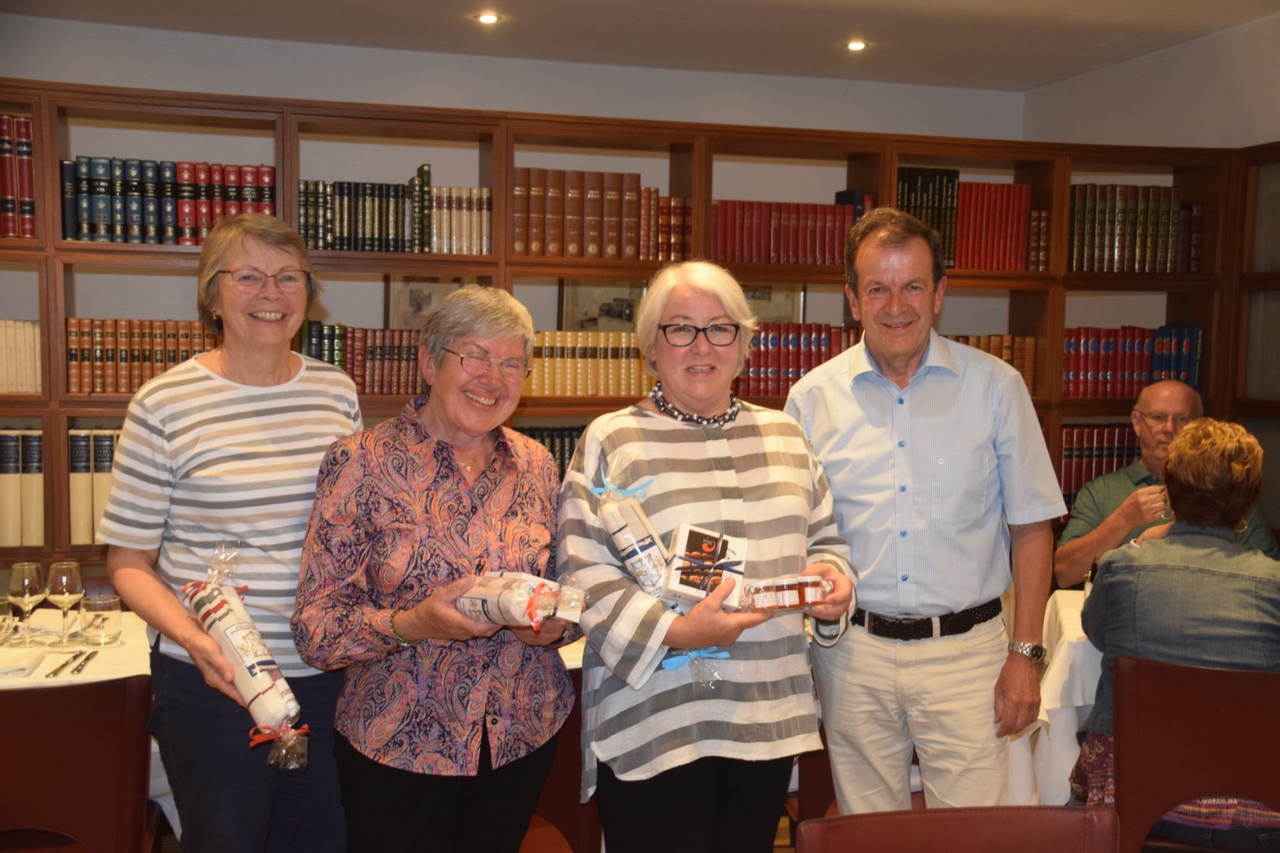 Nach dem Abendessen im Hotelrestaurant führte Herbert Vollmer die Tradition fort, langjährige Mitreisende zu würdigen. Zunächst gedachte man mit einer Schweigeminute des 2009 verstorbenen Initiators der »Pfingstfahrten«, Hans-Georg Kluckert. Mit einer kurzen, humorvollen »Laudatio« beglückwünschte Herbert Vollmer dann zunächst Elisabeth Antes für die Teilnahme an zehn Fahrten, sodann Béatrice Kräutler für 20 Fahrten und schließlich die »Rekordhalterin« Gretel Mark, die bereits sage und schreibe 30 Mal dabei war. Unter dem Beifall der Anwesenden überreichte Vollmer jeweils ein Geschenk.