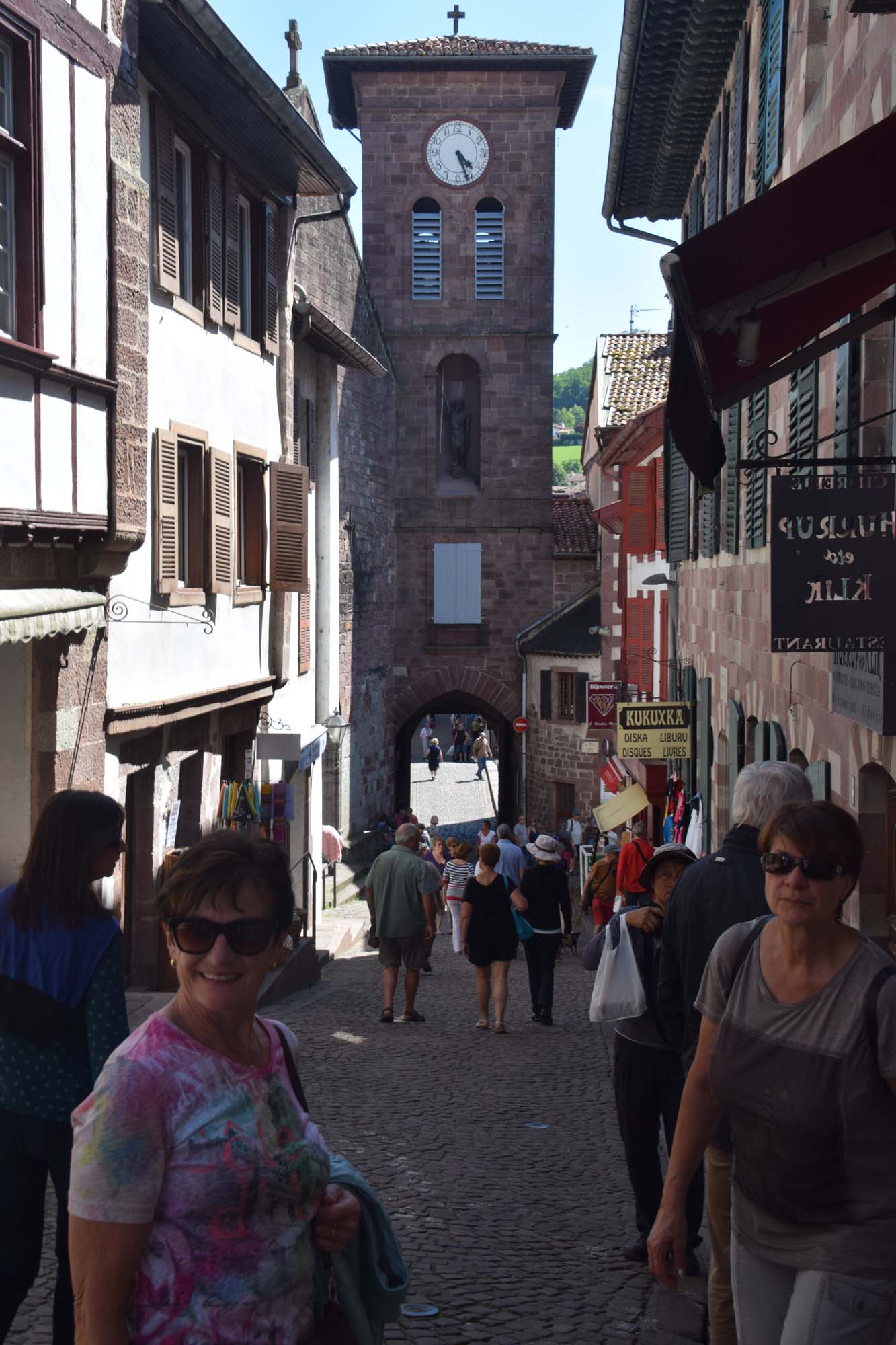 Den letzten Halt vor der Rückkehr nach Biarritz machte man im Ort Saint-Pée-sur-Nivelle, dessen mit Wehrgängen versehene Schutzmauer um den Altstadtkern noch gut erhalten ist. Vom Platz unterhalb der Zitadelle, die heute ein Collège beherbergt, hatte man eine gute Aussicht auf die Stadt und die nähere Umgebung sowie auf die südliche Pyrenäenkette mit dem höchsten Berg, dem Rhune. Saint-Pée war vor allem während der spanisch-französischen Kriege ein wichtiger strategischer Ort. In der Stadt mit ihren schmalen Gassen und interessanten Geschäften fiel besonders eine Gewürzhandlung ins Auge, in der hunderte von kleinen Säcken, Schalen und Gefäßen mit Gewürzen, getrockneten und kandierten Früchten aus aller Herren Länder feilgeboten wurden. Ideale Mitbringsel, als Geschenk oder für den Eigenbedarf zuhause. Zurück in Biarritz hieß es dann Abschied nehmen von Reisebegleiterin Birgit.