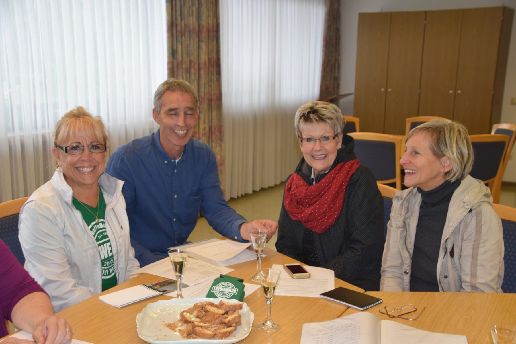 Gemeinsam studierten (von links) Mary Brock, Thomas Laifer, Deb Angelbeck und Astrid Litty in den Unterlagen über die Nordracher Vorfahren.