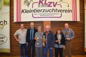 In der Altersklasse gelang es Karl Erich Schätzle, Vereinsmeister mit der Rasse Dt. Kleinwidder weiß RA (Rotaugen) zu werden. Er erhielt auch den Wanderpokal für die besten sechs Tiere eines Züchters mit dieser Rasse. Mit nur einem halben Punkt Rückstand wurde Bernd Welle Zweiter mit der Rasse Farbenzwerge havannafarbig. Er stellte auch das beste männliche Tier mit einer Bewertung von hervorragenden 97,5 Punkten. Auf den weiteren Plätzen landeten Sonja Welle mit Farbenzwerge schwarz, Doris Welle mit Alaska und Mathias Welle mit Farbenzwerge wildfarbig.