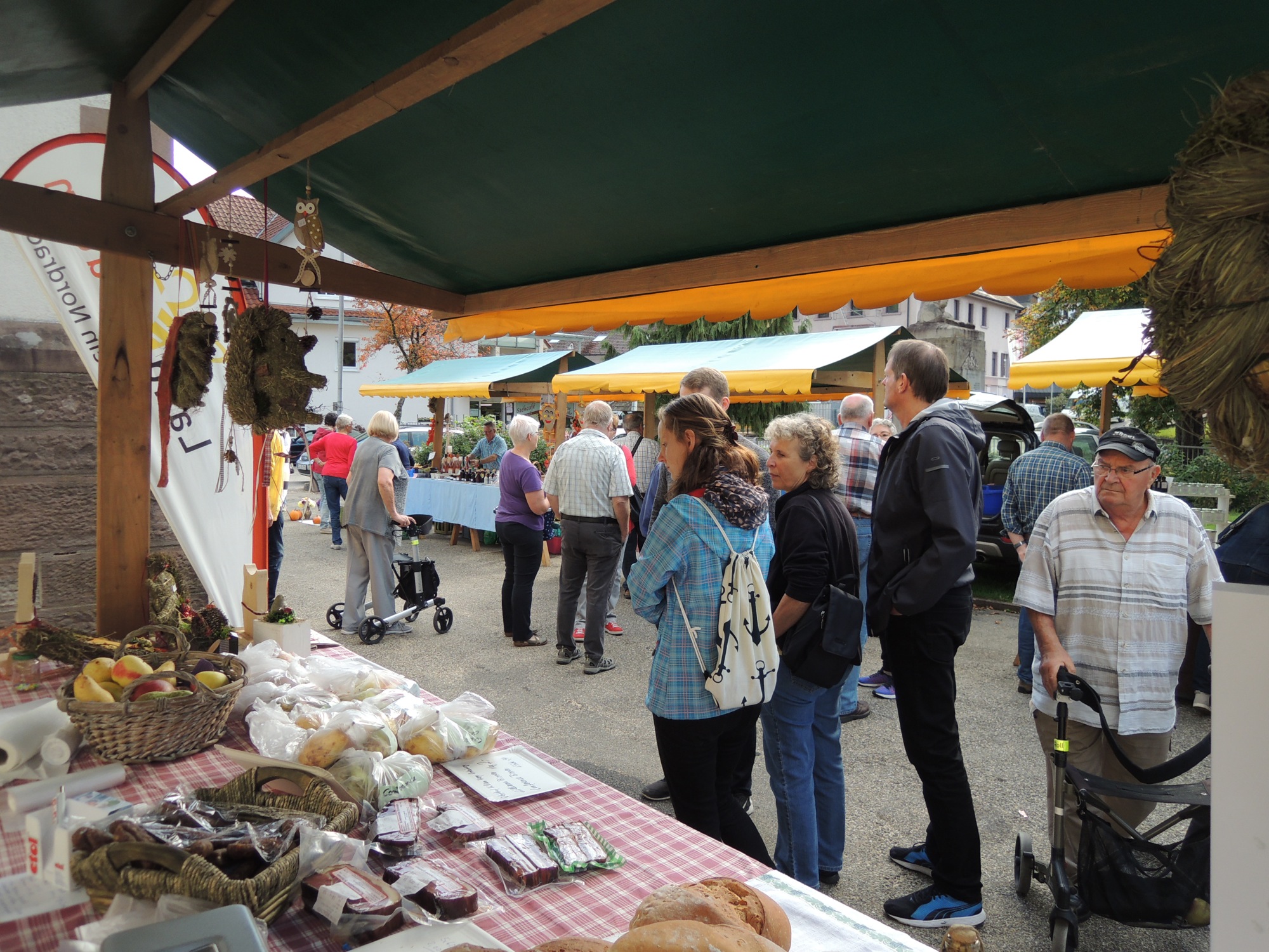 »Ä weng ebbis i’kaufe« konnte man an den wunderschön gestalteten und reichhaltig bestückten Marktständen. Das reichhaltige Angebot selbst hergestellter Produkte umfasste unter anderem frisches Bauernbrot, Marmeladen, Gelees, Honig, Bauernbratwürste, Apfelsecco, Liköre, Schnäpse und Linzertorten. Dekoartikel »aus alten Sachen neu kreiert«, Türkränze, Seifen und vieles mehr rundeten das reichhaltige Angebot ab.