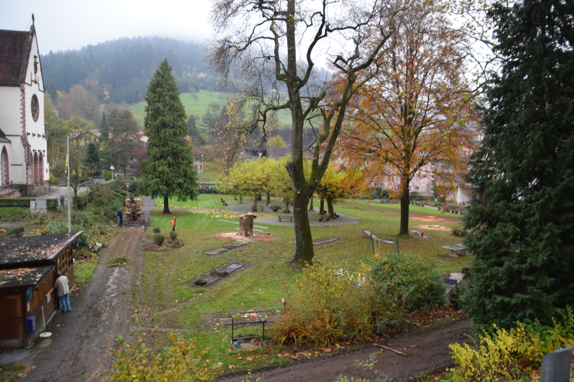 Der Nordracher Kurpark wurde zu Beginn der dreißiger Jahre des vorigen Jahrhunderts angelegt. In den letzten Tagen haben Waldarbeiter der Gemeinde fast den gesamten Bestand der 90-jährigen Thujabäume gefällt, die nicht nur den Kurpark, sondern auch das Dorfbild geprägt haben.