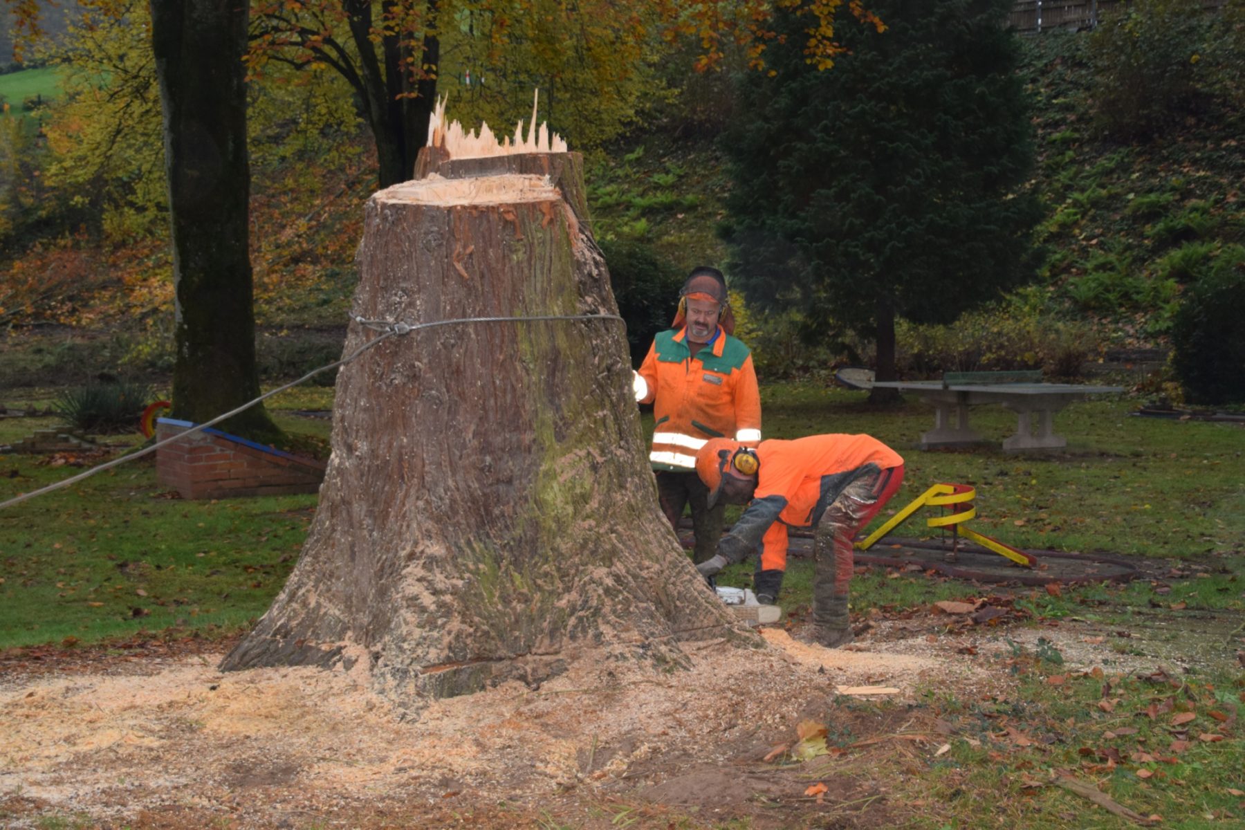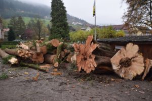 Bürgermeister Carsten Erhardt begründete das Fällen der Bäume: »Die Bäume mussten wegen der Verkehrssicherungspflicht gefällt werden, da die Fäulnis leider zugenommen hat und dadurch die Standsicherheit gefährdet war. Der Zustand der Bäume hat uns seit Jahren beschäftigt. Nun war das Risiko einfach zu groß und nicht mehr tragbar«.