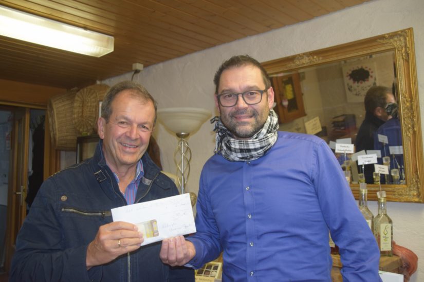 Egbert Laifer, Inhaber von Choco-L und Ideengeber der Moospfaff-Wochen in Nordrach, spendete erneut die Einnahmen aus einer Moospfaff-Veranstaltung im Pfarrheim dem Historischen Verein Nordrach. Die Spende ist bestimmt für die Sanierung des Kruzifixes am Weiherbühl. Herbert Vollmer, Vorsitzender des Historischen Vereins Nordrach, dankte ihm herzlich und konnte ihm die erfreuliche Nachricht mitteilen, dass vor wenigen Tagen die denkmalschutzrechtliche Genehmigung erteilt wurde. Das Kruzifix kann somit im Laufe des Jahres 2018 saniert werden, wenn die Finanzierung sicher gestellt ist.