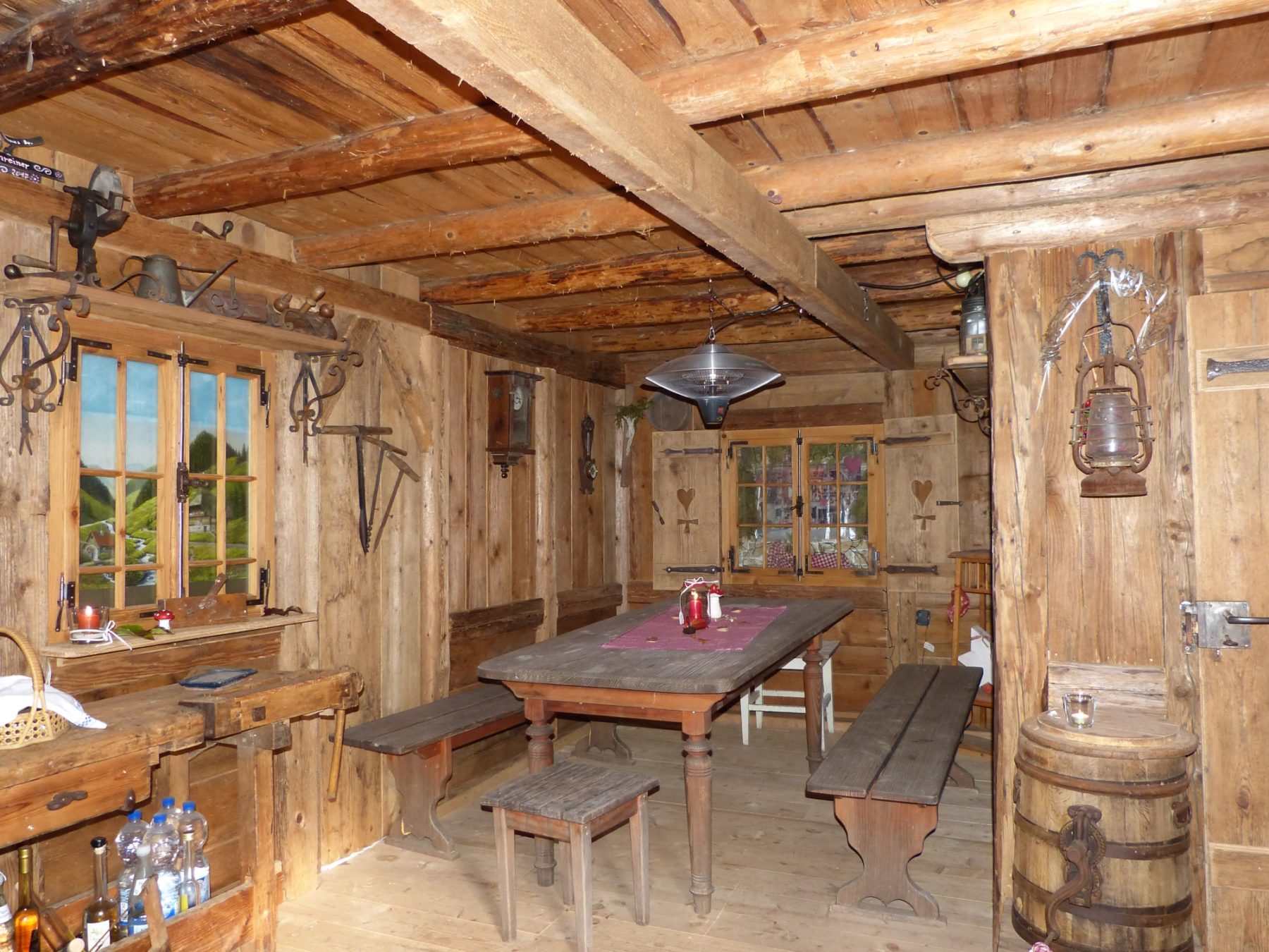 Von da an habe sich die Sache entwickelt. Geburtstage und Feste wurden in dem einstigen Unterstand gefeiert, »alles schön beleuchtet und mit einem alten Ofen, das war super genial«. Derart motiviert nahm Klaus Willmann nun den Umbau und die Ausgestaltung des ehemaligen Heuschopfes in Angriff, der bis dato zur Lagerung von Brennholz diente. Ohne nach einem Plan vorzugehen. »Nach und nach gewachsen ist das alles. Wenn mir vor acht Jahren jemand gesagt hätte, dass das mal so wird, wie es jetzt ist, hätte ich gesagt: nie im Leben«, freut sich der begnadete Handwerker staunend über sein Werk, wie es heute da steht.