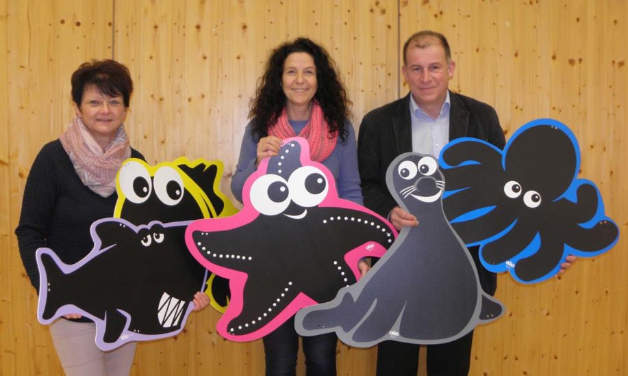 Pünktlich zum Nikolausfest durfte Kindergartenleiterin Andrea Neumaier (Mitte) fünf große Maltafeln in kindlich-bunter Optik für den U3-Bereich entgegennehmen. Im Rahmen des Sommerferienprogrammes hatten Gabi und Waldemar Neumayer (außen) die allseits beliebte Alpakawanderung im Moosbachtal angeboten. Den Erlös spendeten sie an den Kindergarten. Als Dankeschön für die großzügige Spende überreichte die Kindergartenleitung eine handbemalte Leinwand – verziert mit einem Alpaka.